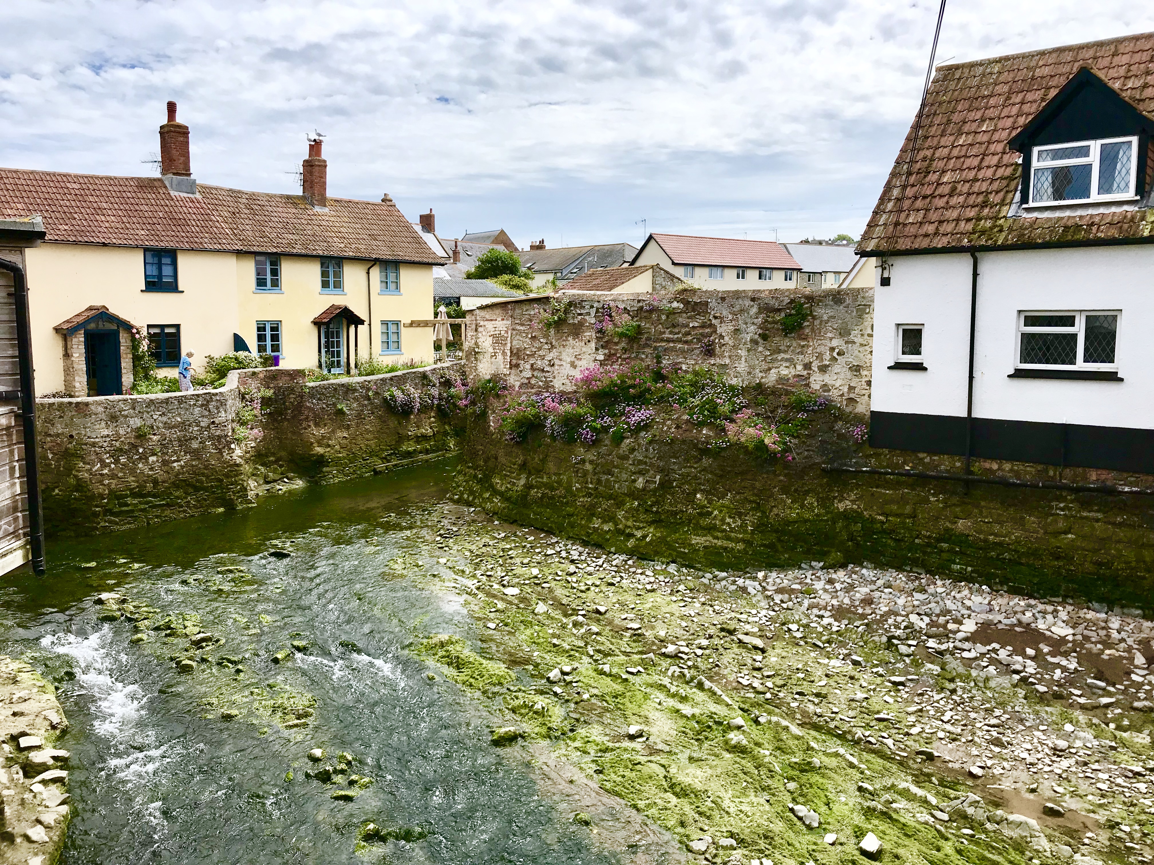 A sign from the car park pointed us to a way-marked trail called the “Tall Trees Trail’, so we grabbed a beer each and our hiking shoes, and before we knew it we were strolling through paradise. Dappled sunlight shone through the leaves and twinkled on a stream rolling gently through the forest. The trail soon led to what was marked as the tallest tree in England! We couldn’t believe our luck to stumble across such a landmark unexpectedly. The forest turned out to be an arboretum, now managed by the forestry commission, criss-crossed with public footpaths. We followed one downhill and crossed a ford to the local village of Dunster, another North Somerset gem.