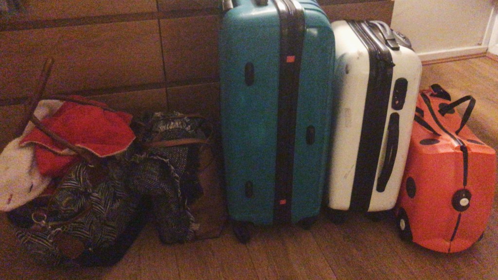 Packed up like this I can easily navigate the terminal by myself, with a child and 4 bags in tow – plenty for a long weekend without having to check anything in! The only difficulty is getting onto the plane once I’ve handed over the buggy – see below..!